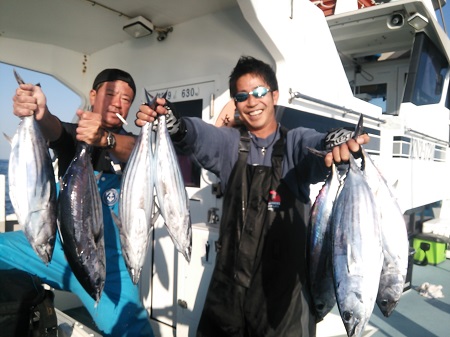 マグロハンター【宮ちゃん】に同行し 営業前にひとっ走り〜仕入と称して 神奈川県洋征丸に乗船 相模湾小坪沖で マグロ を狙う 〜宮ちゃん、今季3度目ヒット!!! 手ごたえ十分らしかったらしいが。。。またもや「エアーマグロ」 しかし、外道の本ガツオ 竿頭に1本足らずの 5本ゲット! 両手いっぱいのカツオが重そう〜まるで魚屋さん JUGEMテーマ:磯釣り