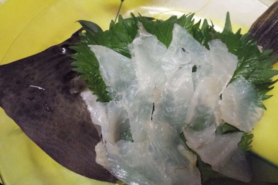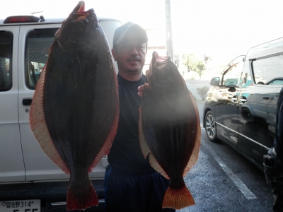 ヒラメ漁解禁になり kenちゃん・宮ちゃんと3人で いざ〜千葉県飯岡 ”幸丸”乗船 悪天候を覚悟していたものの〜絶好のヒラメ日和 結果 ”幸丸”にて竿頭の 2kg〜3kgクラス6枚GET (kenちゃん5枚・宮ちゃん3枚) ヒラメの旬は これからで 晩秋から初春が最も脂が乗り身が締まって美味しい [釣れたょ]メールでご来店いただいた 【 悟君 】ヒラメの刺身を持ち満面な笑顔 いつもご来店ありがとうございます 新鮮ヒラメの刺身 ¥800 ヒラメのフライ ¥800 ヒラメのムニエル ¥...