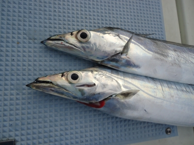 先週の真ダコ大漁に続き 今回は 【太刀魚】大漁!小ぶりながら32匹get 旬の脂の のった太刀魚は 焼くことで 旨みが増し 白身魚の中でも 飛びぬけて塩焼きが美味しい魚です その上 悪玉コレステロールを減らしてくれる働きがある オレイン酸がたっぷりの旬の太刀魚をどうぞ! ≪刺身・塩焼き≫ 各¥800 JUGEMテーマ:磯釣り