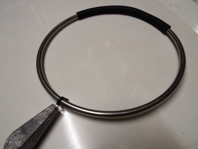 相模湾に カツオと共に キハダマグロがきてるらしい 昨年 宮ちゃんが釣り上げたキハダマグロは30kg! しかし〜 悲しいかな直前に鮫にバックリやられてしまった! せっかくヒットした獲物がこうなる前に・・・ 用意周到〜手作り”マグロリング” 道糸から流してマグロのエラにはめて 動きを封じ目るための時間短縮の道具 これを使える事を念じて。。。いざ! JUGEMテーマ:磯釣り