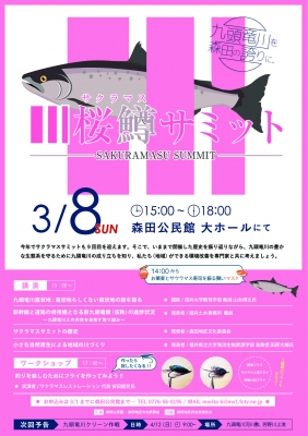 下記に掲載しました『サクラマスサミット』は、延期にするむね森田公民館さんよりご報告をいただきました。 延期の期日がくわしく決まりましたら、またこちらのブログでもお知らせいたします。