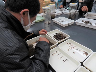 サクラマスレストレーションでは、 毎年サクラマスが産卵する九頭竜川の支川で、 河床環境別に底生動物の生息数を把握するための 調査を行っています。 写真は定量採取したサンプルを、カゲロウ類、トビケラ類、 カワゲラ類などに分ける作業の様子です。 現場では流下調査なども行い、自然繁殖するための河川環境を 毎年観察しています。 (3月中旬の作業です) 地道な作業ですが、サクラ...