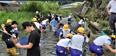 2019年9月4日(水) 九頭竜川本流の左岸にある志比小学校と 右岸にある志比北小学校が合同で、 環境学習会を行いました。 小学校4年生25名、安田代表が講師に 招かれて、支流の永平寺川で「底生動物の 観察会」です。 みんな生き生きと楽しそうに、取り組ん でいました。教室から離れて、水辺の 学習はいいものですね。