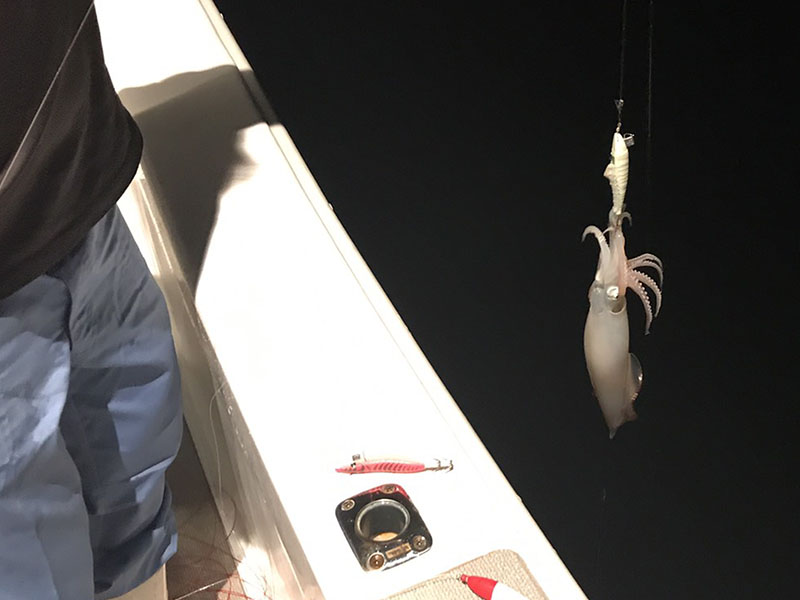 JUGEMテーマ:釣り全般 少しですがヤリイカ(ケンサキイカ)が釣れ出しました。 海龍では夜のヤリイカ釣りも行っています。 (3時間程度)