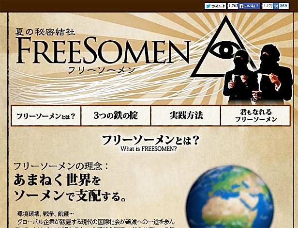 夏の秘密結社『フリーソーメン』が新規加入者を募集しています。あ、ちなみに世界的に有名な秘密結社『フリーメーソン』の方じゃなくて、主に日本で活動している「無料で素麺を配る」団体さんの方です。