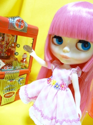 JUGEMテーマ:Blytheペニー「どれを狙おうかな〜」「いろいろなグッズがあるから迷うわ」「コーラ半ダース、プレート、ぬいぐるみ」「金貨もあるみたい」「クレーンで狙える角度か、横からもチェックしないと」「でも失敗したら、無一文よ。。」「下から手を入れたら、取れるんじゃないの?」*そんな事しちゃいけませんよー。「現実路線を行くならば。コカコーラを普通に買えば、1本は買えるのよね。」悩めるペニーでありました。