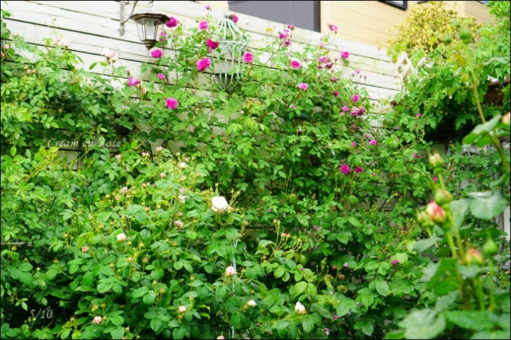 JUGEMテーマ:薔薇ダイアリー ゴールデンウイーク辺りから ぽつぽつ開花が始まる早咲きの紫玉。 5/10 冬にあまり剪定しなかったので 高さ3mの板塀のてっぺんまで到達。 こちらが去年の紫玉。 すっきりまとまっていて このくらいがベストだったように思う。 ...