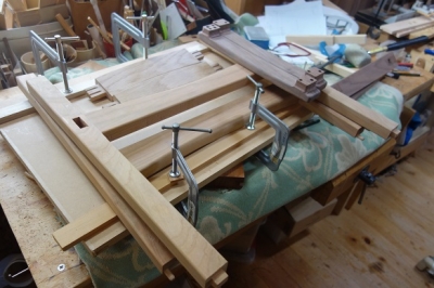 JUGEMテーマ:木工 長らく更新を怠けていましたが、この地京都では全国でも 最上位に近い猛暑が続いています。 そんな中、エアコンの故障した作業場で新しい椅子の製作 を始めました。 新しいといっても、私にとって初の挑戦 という意味で、デザインはネットで見つけたどこかの工房 さんの作品の写真をそのまま模倣させてもらっています。 正面から見るとアルファベットのHの形をしているので Hチェアと名付けてみましたが、今回はそのフレ−ムの 組み立てまでの紹介です。(メインは紐を...
