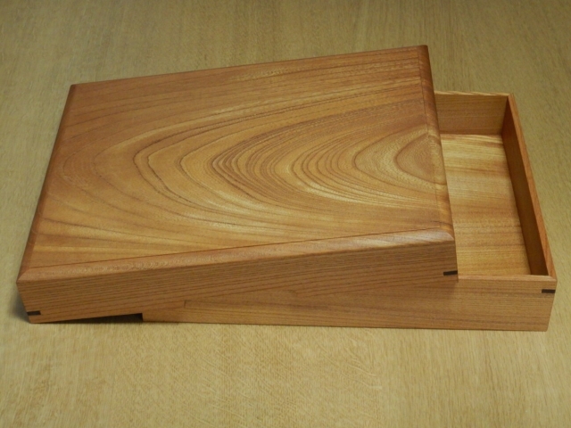 JUGEMテーマ:木工 木工舎で製作中の文箱欅版その2は、拭き漆の木地にすべくキズが無いように細心の注意を払ってノロノロ作って来ました。今日は蓋の天板の周囲1センチ部を約1ミリ削りさらに端部に向けて丸く落とす装飾作業と蓋、箱双方の四隅に補強用に4ミリ厚のウオルナットの板を差し込む「かんざし差し」作業を行い、文箱木地作りを終える予定でした。装飾の加工が終わり、かんざしを差す準備に掛かった時、かんざし用のウオルナットの端材を横浜木遊びに置いて来ていることを思い出し、今日の作業は箱の装飾までとなりまし...