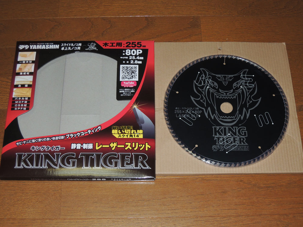 JUGEMテーマ:木工 テーブルソーの刃を買いました。 元々付属だった刃は60P、つまり直径255mmの円に60個のギザギザがありました。 今回、80Pに。 名前が「キングタイガー」(笑) そんなカッコイ名前いるかなぁ〜 僕のようにガクブチくらいの細いものを切る時は刃数が多い方が切り口がキレイなはずです。 実際、感動するくらい体感できましたよ。 今日のポイント「刃数、大切。」 (^-^)