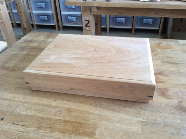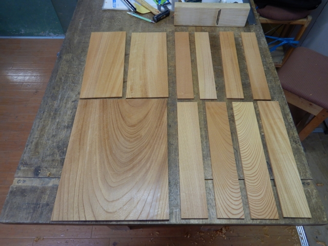 JUGEMテーマ:木工 木工舎に再入会して3回目の予約日です。拭き漆仕上げを目指す文箱(欅)を作り始めましたが、初回は砥石を忘れ、前回は図面を忘れ、思うように作業が進んでいません。今回は「忘れものをしない」としながらも、朝自宅を出る時、ルータービットを木遊びに置いてきてしまったことに気づきました。そのため今日予定していた底板用の薄板2枚を接ぐことができません。仕方がないので底板を除いた部材(側板8枚)を図面の寸法に裁断する作業に入ったのですが、図面のサイズに切ると大分欅板に無駄が出るので、急遽予定寸...