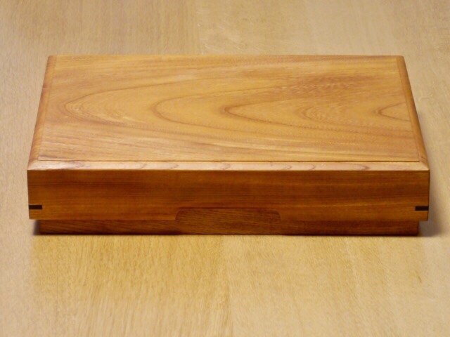JUGEMテーマ:木工 文箱の蓋と箱の四隅に差したかんざしのはみ出し部分をノコギリで落とし鑿でさらい、続いて蓋の天板の周辺部を丸面ビットという刃物を使って丸く落としました。これで文箱の木地作りはほぼ終わり、残っている作業はあと箱と蓋の端部の面取りです。紙やすりをさっとかけるだけで角を残すのか、あるいは鉋を使って削り角に丸みを持たせるか、これで作品の印象がかなり変わります。木地の完成まで9.5合目まで来ました