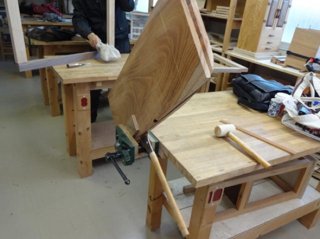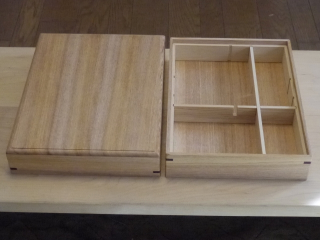 かんざしのはみ出し部分を鋸で切り落とし、残った僅かなはみ出しをノミで削って、これで仕上げ塗装を除いた文箱試作品の加工が終わりました。仕上がり品を眺めていると、蓋の天板の縁をかなり丸く落としている一方で、かんざしを差した側板周りの四隅が尖っているのがバランスが悪いような気がします。そこで、側板周りの四隅も紙やすりを使って丸く整えることにしました。赤いかんざしの入った試作品の完成で、「素敵で知的でお茶目な文箱」作りの目処が立ちました。来週からは、試作で分かったことを生かして幾つか元の設計を変更し...