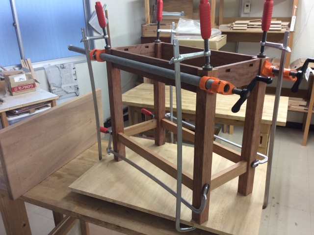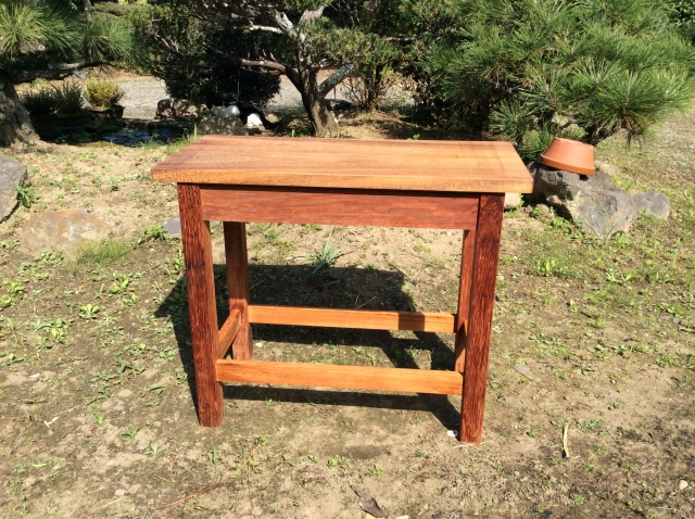 JUGEMテーマ:木工 父親の依頼で作り始めた屋外に設置する置き台、重たい物がのせられるようにブビンガといったとんでもなく重たく堅い木で作ってきました。ノミがボロボロになりながらもここまで順調にきましたが、最後の最後でミスをしてしまいました。 天板を止めるのは駒どめというやり方で、幕板に窪みを掘って駒を差し込み、駒にネジを通して天板を固定します。写真では幕板に二個づつ窪みが見えますが、窪みは幕板の内側にあるべきもので、幕板の外側に見えるのは変です。組み上げる時に一枚幕板の裏表を間違えて付け...