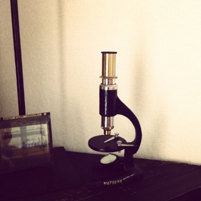 私物の小さくて古い顕微鏡です。 最近では古いビーカーやメスシリンダー、標本や 人体解剖図など こうゆうものを 「理系アンティーク」というのだそうです。 こちらは色がスキ。 付属品もレトロでかわいらしく さらにもう一台あります。 古い道具類やアンティークカメラ 骨董の器など いくらながめていても飽きない美しさがあります。 JUGEMテーマ:古美術・骨董・アンティーク