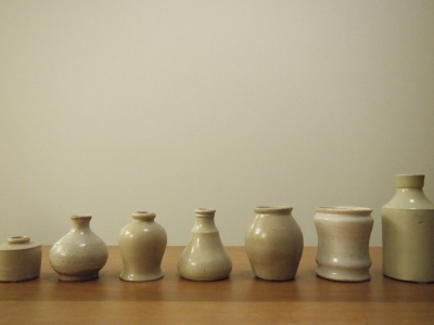 なんとなく集めている古くて小さな白い壷。 一番小さいのが高さ4.5cm。 右から イギリスのインクボトル 15,6世紀のミャンマーの壷 イギリスのインクボトル こちらもイギリスのインクボトル ベルギーのマスタード壷? 17世紀のデルフト薬壷 イギリスのインクボトル インクボトルの率高し。 JUGEMテーマ:古美術・骨董・アンティーク