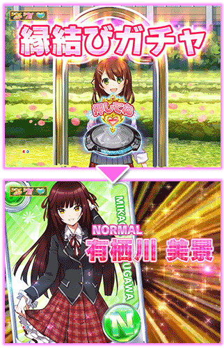 縁結びガチャ ■図柄変動に合わせて画面に「縁結びガチャ」が出現。ボタンを押してレアカードがゲットできればスーパーリーチ発展のチャンスとなる。 レア縁結びガチャ予告 ■通常のガチャよりチャンスとなる演出。出現率は低いがスーパーレア以上のカードを獲得できるチャンス。連続予告などとも連動しやすい。 スペシャル保留変化予告 ■先読みとなる演出で変化する保留表示に注目しよう。レアアイテムや金色系に変わるとアツい!? おたすけ部集合予告 ■おたすけ部のメンバーが全員集合するとチャンス。ステップ...