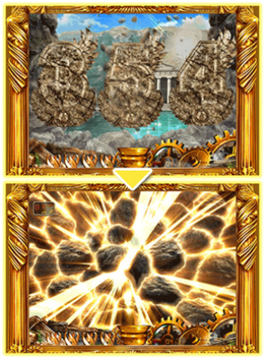 神々の試練予告 ■ボタン連打で壁を突破するゲーム。突破成功ならば必ずスーパーリーチに発展。次々と壁を破壊してSPリーチを獲得せよ。 図柄属性先読み予告 ■氷、炎、雷、図柄拡大……と出現する属性によって展開される先読み演出。パチスロ的アクションでチャンスを演出してくれる。該当保留の消化時に強い予告が発生するとチャンスだ。 チャンス目先読み予告 ■図柄停止時にチャンス目が成立すると発生する。「ケツテンパイ」「順目」「エフェクト」などの種類がある。基本的に白→黄→緑→...