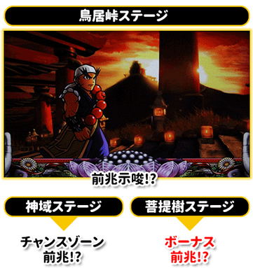 通常時は4つのステージを行き来 ■ステージは全部で4種類。各ステージの示唆対象をしっかりチェックしておこう。 チャンス演出 ■チャンス系の演出は多数存在。唯は登場するだけでチャンスアップ。南無……の文字は多ければ多いほどチャンス。梵字は大きいほど期待度がアップする。 連続演出 ■連続演出は成功すればCZかボーナス。それぞれチャンスパターンが存在し、いつもと違うパターンが発生すれば期待度が大幅アップだ。 レア役の停止型 ■チェリー出現時は残りのリールに2連禅絵柄が停止すればチ...