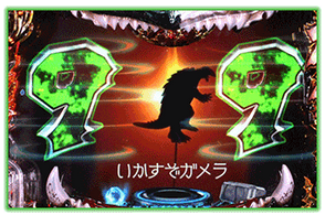 ガメラマーチ連続予告 ■突如ガメラのマーチが流れ、曲に合わせて最大4段階まで発展する。 追跡ミッション予告 ■ミッション成功となれば、直Vチャンスへと移行する。 VS昭和怪獣SPリーチ ■ガメラの対戦相手により期待度が異なる。VSギロン<VSジャイガー<VSバイラスの順にチャンス。最大4段階まで発展し、途中でカットインなどのチャンスアップ演出が多数盛り込まれている。 VS平成怪獣SPリーチ ■昭和怪獣SPリーチ同様、対戦相手によって期待度が異なる。VSギャオス<VSレギオン<VSイリスの順にアツい。リーチ...