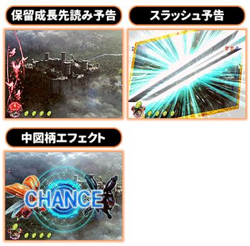先読み予告 ■玉がヘソに入ると発生する可能性がある先読み演出をチェックしておこう。 まずは「保留成長先読み予告」が重要。通常時のさまざまな予告から液晶内部に表示される保留表示が成長(変化)していくことがある。 花、木のアイテムがそれぞれ変わっていくほどチャンスとなる。 また、「スラッシュ予告」は画面が切断されればチャンスとなる。「中図柄エフェクト」は赤系の派手なものに変わるとスーパーリーチのチャンスだとなる。 通常時予告 1 ■図柄変動に合わせて多彩な予告演出が発生する。ポイントに...