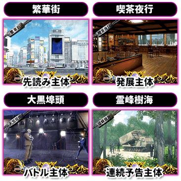 ゲームのポイント その1 ■通常中は演出展開が異なるモードを搭載しており「繁華街=先読み主体」「喫茶夜行=発展主体」「大黒埠頭=バトル主体」「霊峰樹海=連続予告主体」に分かれる。また、先読みゾーンも「震撼ゾーン」を始め「卓上ルーム=繁華街専用」「廃坑内=霊峰樹海専用」と搭載され、バリエーションが豊富だ。 ゲームのポイント その2 ■赤図柄揃いならそのまま確変の「帝国タワーモード」に突入。青・紫図柄揃いなら一度「DEATH JUDGE BONUS」を経由し、成功で帝国タワーモードに、失敗すると「廃ビルモード...