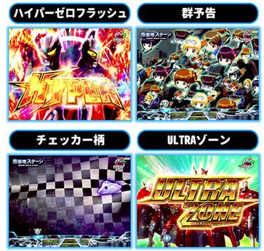 チャンス演出 ■大当たりに結びつきやすいチャンス演出を押さえておこう。まずは「ハイパーゼロフラッシュ」突然のブラックアウトから発生する。盤面に降臨するゼロフラッシュは激アツの展開を約束する。 「超絶カットイン」はインパクト抜群! 実写キャラがリーチ発展時などにカットインすれば期待度は急上昇する。「サーガチャンス」はウルトラヒーロー3人が並ぶと発生する。 ルーレットで選択されたSPSPリーチへ移行する。もしウルトラマンサーガが登場すれば鬼アツ!? 「緊急警報モード」は突入時点で高確率の可能性もある...