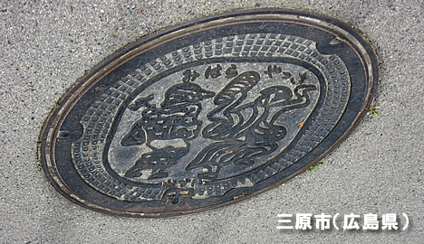 広島県三原市のマンホール。 8月に行われる三原やっさ祭りがモチーフ。 ※三原やっさ祭り 三原の二大祭りのひとつ。三原城の築城を祝って始まったといわれるやっさ踊りを中心とした祭り。 8月の第2日曜日を含む金・土・日の3日間開催され、踊りながら多くの人々が三原駅前一帯を練り歩く。 最終日には花火大会もあり、毎年30数万人の人出で賑わう(ウィキペディアより) This is a manhole of Mihara-shi, Hiroshima. Mihara Yassa festival is drawn on this manhole.