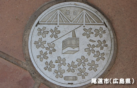 広島県尾道市のマンホール。 尾道水道の斜張橋。 専光寺名所の桜と千光寺ロープウェイが描かれています。 This is a manhole of Onomichi-shi, Hiroshima. In it a bridge of the Onomichi Channel, Famous cherry tree and Senko-ji temple ropeways are drawn. JUGEMテーマ:マンホール探検隊