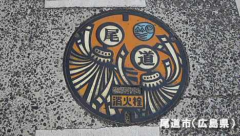 尾道市の消火栓のマンホール。 纏に、小さく斜張橋と尾道水道がかわいらしくデザインされています。 This is a manhole of the fire hydrant of Onomichi-City,Hiroshima. JUGEMテーマ:マンホール探検隊