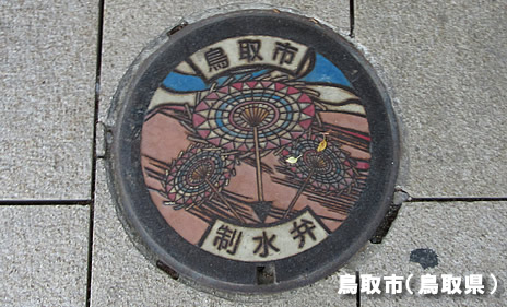 鳥取市のマンホールです。 毎年8月に行われる鳥取しゃんしゃん祭の際、踊りに使われる 鈴の付いた傘が描かれています。 This is a manhole of Tottori-shi. Tottori syan‐syan festival is held every year in Tottori in August. On a manhole, everybody uses it for the dance of the festival The umbrella with the bell is drawn. JUGEMテーマ:マンホール探検隊
