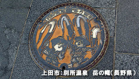長野県上田市別所温泉のマンホールです。 ここで行われる、岳の幟(たけののぼり)という雨乞いのお祭りが描かれています。 このお祭りは国の重要無形民俗文化財に指定されています。 This is a manhole of Bessyoonsen, Ueda-City, Nagano. The state of the festival is drawn on the it. JUGEMテーマ:マンホール探検隊