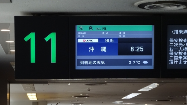 2015年6月 那覇空港から羽田空港へ戻ります。 通り慣れた通路を通り、搭乗口へ向かいます。 搭乗は23番ゲートからです。 搭乗機はBoeing767 搭乗が開始されました。 観光、ビジネス等々東京ー沖縄便はいろいろな方がいらっしゃいます。 本日のシートは28A(非常口座席)です。 タキシング中です。離着陸が混み合い、なかなか離陸の順番が回ってこないようです。 自衛隊機2機が離陸準備です。 さらにもう1枚パチリ やっと離陸しました。 空から見る沖縄は美しいです。 今...