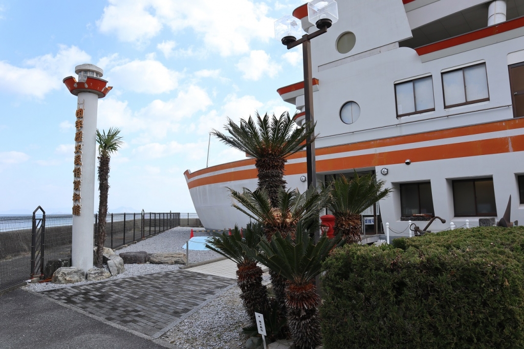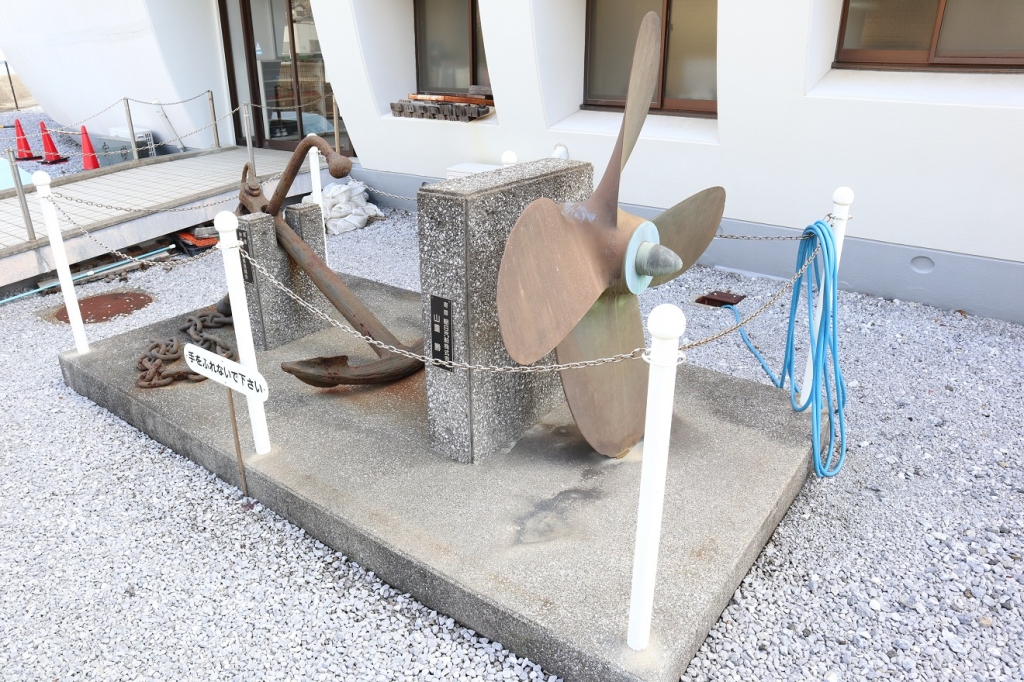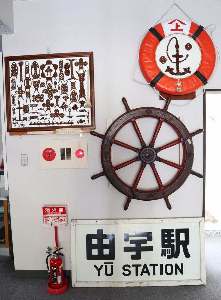 JUGEMテーマ:ぶらり旅 入口正面には、由宇駅看板、船の舵輪、ロープの結び方の額などが展示してありました。 館内の階段も船の雰囲気になっています。