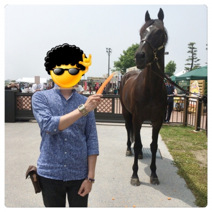 JUGEMテーマ:ぶらり旅 こんにちは! 7月1日の函館競馬場には、2006年のジャパンカップダートの優勝馬アロンダイト号と、2005年にディープインパクトが勝ったダービーで2着し、京都大賞典など重賞3勝をあげたインティライミ号が来場していました。入場してまずはイベント運営本部に行って「えさやり体験」を申し込みました。どちらの馬にしようか悩みましたが、GIホースということを尊重してアロンダイト号にしました。 スタッフさんが撮って下さった写真です。ニンジン...