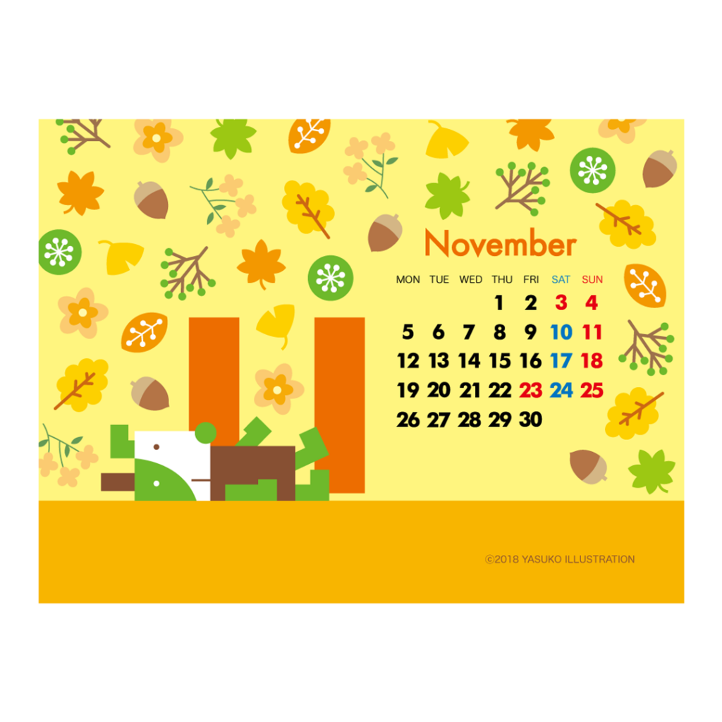 JUGEMテーマ:紅葉 「キイロ・オレンジ・オウドイロ…街が秋色に染まっていく11月♪」 11月も半ばが過ぎて、ぐっと寒さが増してきた今日この頃。 木々の葉が色づき始め、紅葉が見頃となるシーズンになりましたね♪ そんな11月のイメージを、カレンダー付きイラストで表現してみました♪ お手持ちのパソコンの壁紙や、スマートフォンの待受として、 無料でダウンロードできますので、お気軽にお試し下さいね☆ 【November 2018】PC用壁紙...