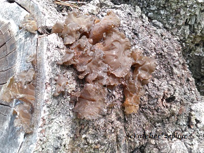 急に蒸し暑くなったり、朝晩は意外と冷えたりと 体が追いつかない今日この頃です。 制作が一段落したタイミングでちょっときのこ散策へ。 以前、キクラゲらしききのこが発生していた、 あの切り株の前を通ったら、またしてもそれっぽいきのこが。 以前の記事です↓ チャワンタケ?まさかのキクラゲ??? 今回はなんとかして上へ登りました。 こちらです↓ ぷるぷるつやつや。 キクラゲによく似てる...と思うのです...