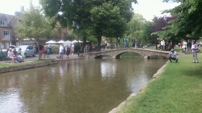 コッツウォルズの続き!! 次に向かったのはボートン・オン・ザ・ウォーターという、村の中心に川が流れている村。 ウィンドラッシュ川って名前らしい。 水が澄んでてカモがいっぱいいた。 川に架かっている石橋はローマ人が造ったものってガイドさんが言ってた気がする。 だから橋の所に「E R」ってはいってるのかな? ここでフィッシュ&チップス食べたかったけど、やっぱムリだった。 「中に日本語のメニューあります」って書いてあって、ツアーの定番コースだからきっと店員さんも観光客慣...