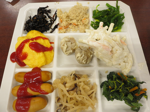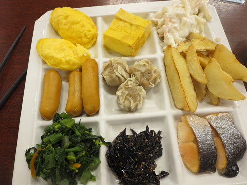 最終日の朝食。 まぁ、昨日と同じですけど! 焼き鮭。 フツーに美味しい。 フライドポテト。 普通に美味しい。 シューマイ。 わさび風味のお漬物。 しそ昆布。 オムレツ。 厚焼きたまご。 マカロニサラダ。 JUGEMテーマ:温泉・ホテル