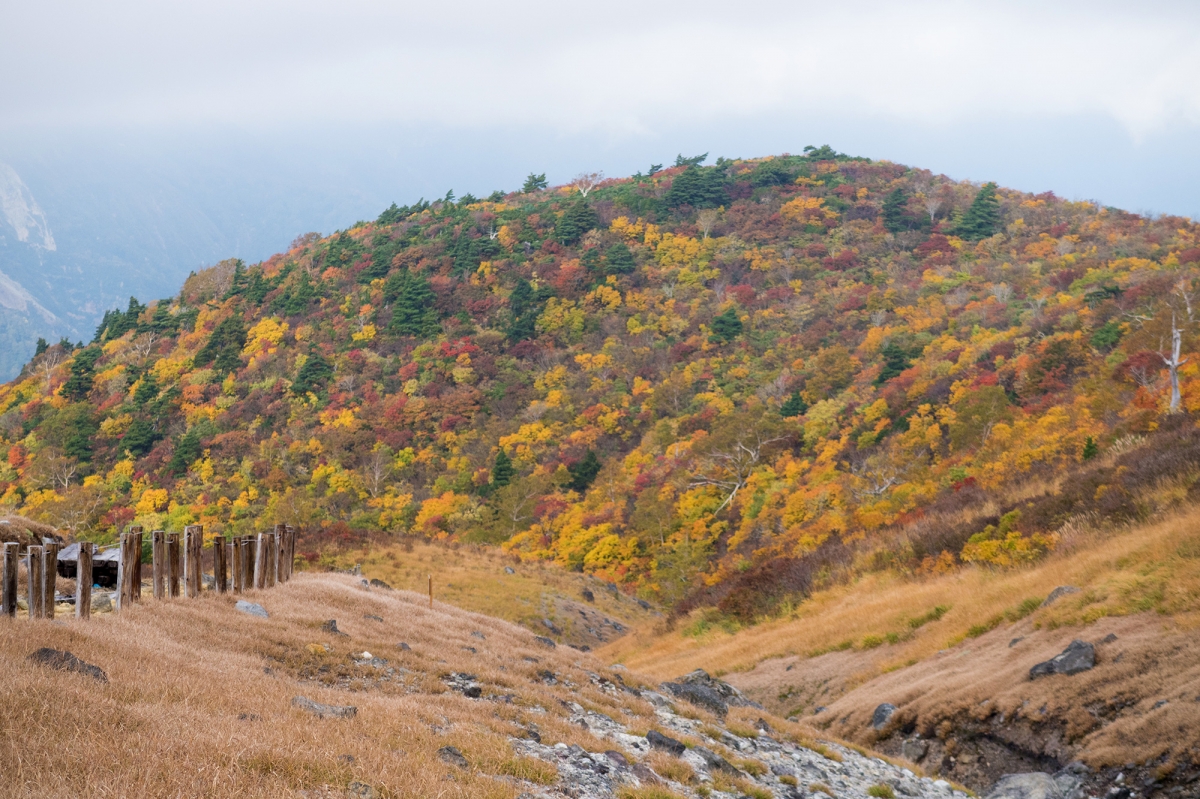 2018.10.05、いわかがみ平から栗駒山に登りました。 ガスガスの真っ白けの登山を続けていましたが、 下りの、もうちょっとで下山かな?というタイミングで晴れました! 白い薄い雲がサァーッと流れるので、ちょっと白っぽく見える時も。 山頂のこちら側は黄色い色が強いみたい。 登山道はぐちゃぐちゃで、泥んこにならないよう気をつけてくだります。 ピカーッと晴れるというよりは、雲が去ってく...