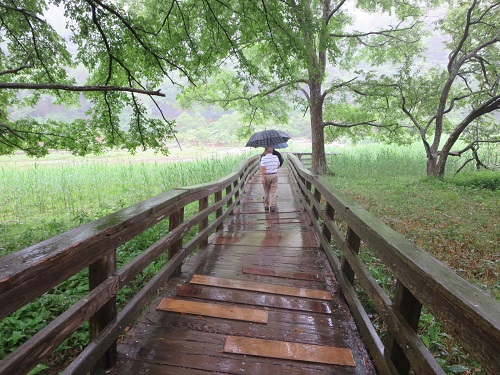 さきほどの温泉寺の境内から木道が伸びており、ここを行くと、奥日光湯元温泉の源泉に行けます。 日光湯元温泉源泉地は温泉街のはずれの湯ノ平湿原にある。各源泉は屋根によって保護されている。ここの源泉は日光湯元の各旅館への配湯だけでなく、近くの光徳温泉や遠く離れた中禅寺温泉まで分湯されている。出典: フリー百科事典『ウィキペディア(Wikipedia)』 遠くの方に、源泉の施設が見えます。 それにしても、ここは湿原となっており、見どころ満載。 美しい… 天気さえよければ言うことないのに…でも、まぁ、雨降...