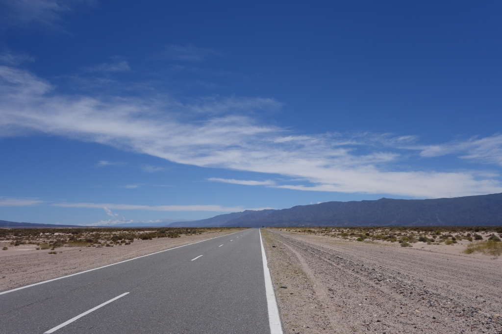 JUGEMテーマ:海外一人旅 1月15日 Cafayate5日目。キャンプ場の居心地が良く沈没していた、、もっといたかったな、、。 今日は走る!! 、、、、遅く起きてノンビリと出発準備。 お昼近くの出発。40号を南下。 道は緩いアップダウン。気温が結構高い、、風は弱く走り易い。 ブドウ畑とワイナリーが多い。 途中あった村の商店で冷えたジュースを買い、お昼休憩。 今朝ターメリックライスを炊き、それにス...