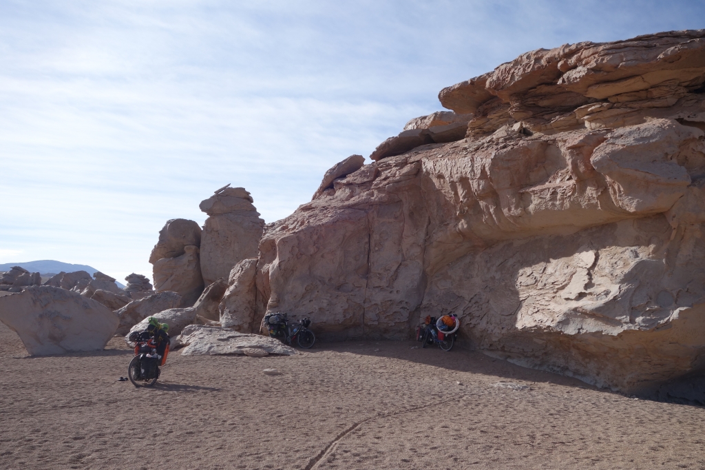 JUGEMテーマ:海外一人旅 12月17日 昨日はArbol de Piedraという奇石群(観光スポット)に着き、テント泊。日本人サイクリスト2人も一緒だ。 朝起きてかなり寒い。昨晩はかなり冷えたようで、外に置いておいたペットボトルの水が凍っていた。 ここ数日の朝食のルーティンは前日の夕ご飯の残りを利用。パスタや米などのこびり付いた鍋に水を貯めておき、その鍋でインスタントラーメン、又はスープを作る。 食後は鍋がピカピカ。エコだな〜、、 ここは標高400...