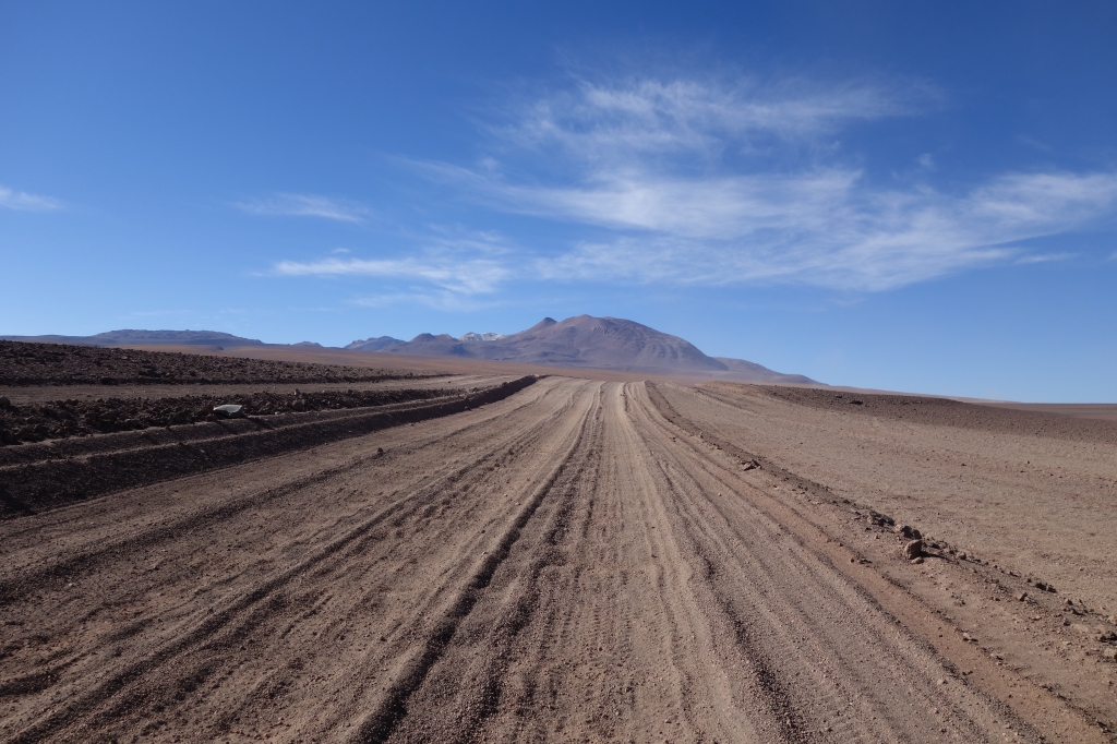 JUGEMテーマ:海外一人旅 12月18日 ボリビア南西部の「宝石の道」をチリに向かい南下中。 昨日はコロラダ湖北西の湖畔の宿にチェックイン。 昨晩はほぼ満室だったが、今朝の日の出前に全員チェックアウトしたようで、起きた時に宿にはオレ一人。 コロラダ湖越しの朝日をみてから朝食を自炊、多めに食べた。水分も多めにとり、走る準備完了。 今日は進めるとこまで進む予定。 出発。 昨日タイヤをマウンテンバイク用の太いの...