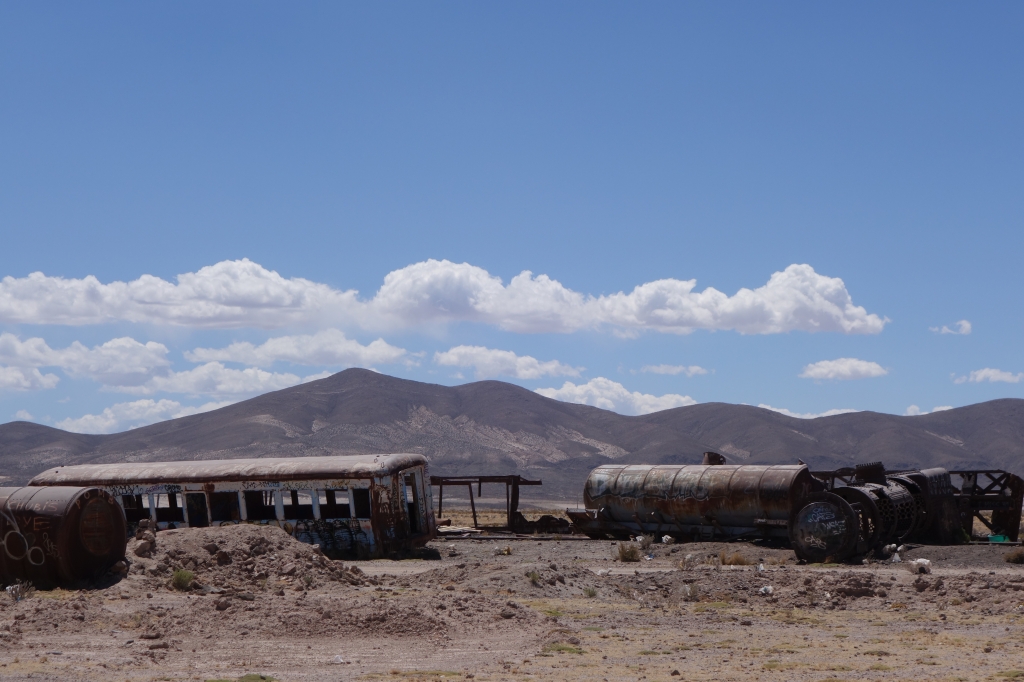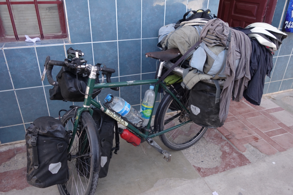 JUGEMテーマ:海外一人旅 12月12日 今日は長く滞在したここウユニ(Uyuni)の町を出る。宿に滞在していた。 朝起きて、出発準備。 ここからチリに抜けるまで約10日間かかる予定だ。 道中に食料を売るようなお店がほぼないとの事前情報なので、食料を大量に持って出発する。 パッキングと荷物を自転車につけるのを手こずり、出発は8時過ぎ。 明らかに、これまでの最大重量。 しばらく自転車に乗っていなかったのもあり、フラフラで走りだす。 と...