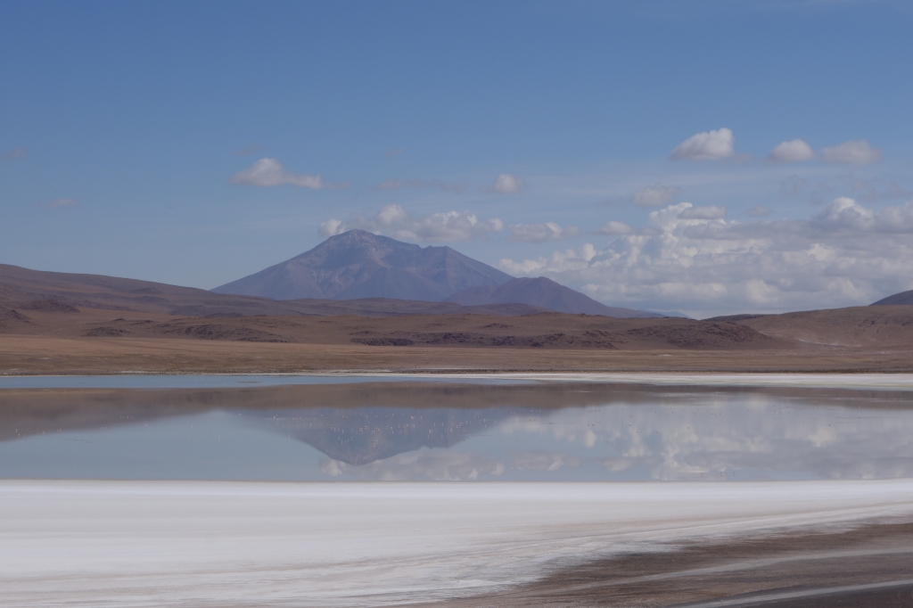 JUGEMテーマ:海外一人旅 12月15日 ボリビア南西部の「宝石の道」を南下中。 昨日はエディオンダ湖、湖畔のホテルに着き、敷地内にテントを張らしてもらった。ここの標高は4150m位。 起きてとても気温が低いのを感じて、日が昇るまでテントの中でシュラフに包まっていた。 7時前に活動開始。テントを撤収、急いで朝食を作り食べた。 今日はTayka del Desiertoというホテルを目指す。距離はここから南に約40km。ネットで調べた事前情報だと、そこまでの道は未舗装路、砂...