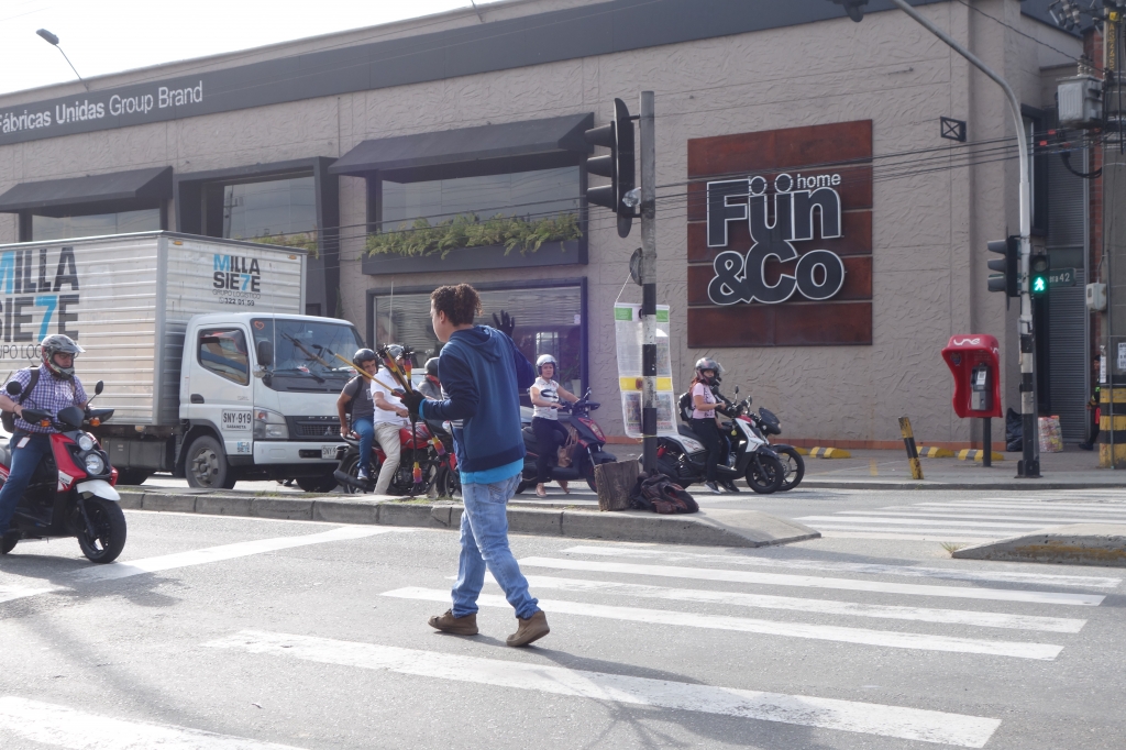 JUGEMテーマ:海外一人旅 8月18日 Medellin(メデジン)3日目、ドミトリーホステルに滞在中。今日はこの町を出る。 早めに起きて、朝ごはんはシリアルと牛乳。 準備し出発。25号を南下。メデジンは大きな都市、交通量は多いがドライバーの皆さんの運転がサイクリストに対して優しくて走り易い。 大道芸人発見 今日は土曜日、地元サイクリストも大通りに沢山。サイクリングジャージを着て本格的なロードバイクに乗っている人が多い。ト...