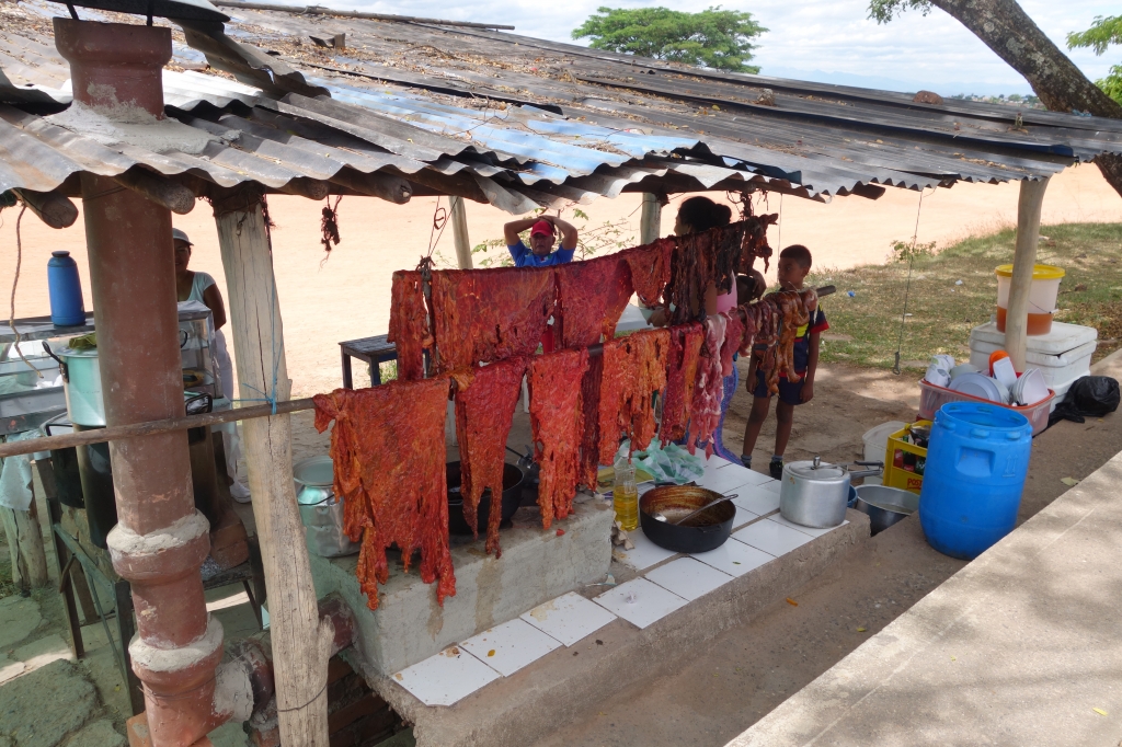 JUGEMテーマ:海外一人旅 8月19日 昨日はLa Pintadaという町に着き、郊外のホテルの中庭にテントを張った。屋根のある場所。 昨晩遅くに雨がふった。朝はとても涼しい。 今日も走るので都合が良い。 とりあえず準備、出発。今日も25号を南下。 少し走るとチョリソーの露店があったので朝食。 チョリソーの中の肉が粗挽きで美味い、、、というか挽肉ではないな、、、、、ぶつ切り肉、、激うま。 主食のアレパ(トウモロコシ粉の薄焼きパン)...