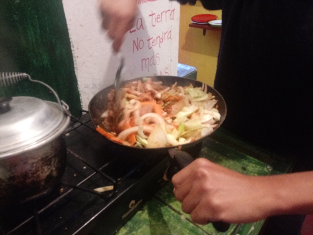JUGEMテーマ:海外一人旅 2月25日 San Cristobal de Casas4日目。カウチサーフィンホストの家にお世話になっている。 今日はこの町を出る。夜行バスでPalenqueという町まで移動する予定だ。 昼間はホスト宅で他の滞在者と話したり、周辺を散策したり、、。 オレにここを紹介してくれた旅人が夕ご飯に韓国料理を振る舞ってくれた。 豚肉と野菜の炒めもの。味付けはコチュジャン。ハバネロも入り、辛ウマ。他の滞在者も一緒に汗をかきながら食べた。 ...