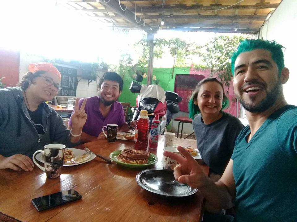 JUGEMテーマ:海外一人旅 12月21日 昨日はCuliacanという町に着き、Warmshowerホストの家にお世話になった。ここはホストの自宅でもあり、ホスト夫婦で経営するレストランでもある。 昨晩は深夜までレストランのお手伝いをした。今朝は遅起き。 昨晩仲良くなったお客さんが遊びにきて、遅い朝食をみんなで食べた。 昨晩のまかないのピザもそうだったが、この店かなりの味のクオリティ。 今日の朝食のワッフルも美味しかった。 一泊だけしかしてないが、と...